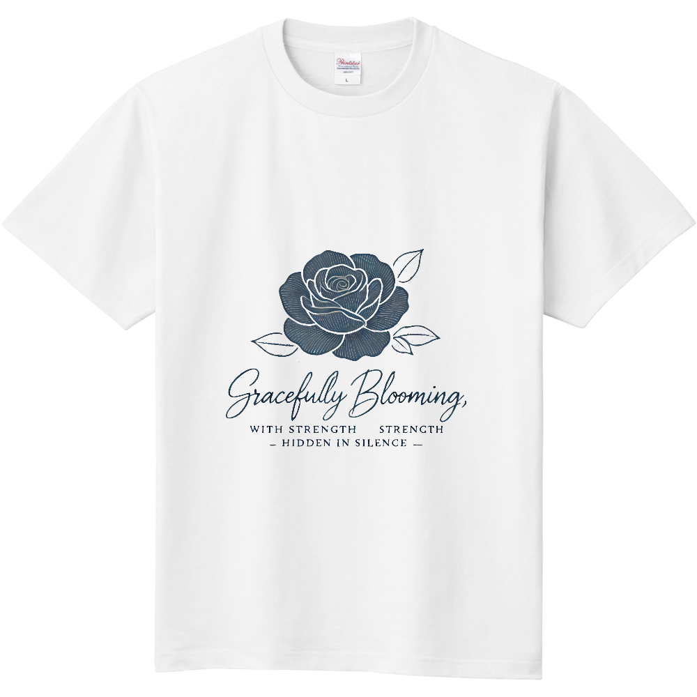 「Gracefully Blooming(優雅に咲き誇る)」というフレーズが印象的なバラのデザインTシャツ。静かに秘めた強さと美しさが伝わるエレガントなデザインは、シンプルながらも力強いメッセージを感じさせます。普段のコーディネートに上品さをプラスしたい方にぴったりの一枚。日常にエレガンスを添えるTシャツで、あなたの個性を華やかに表現してみませんか?
